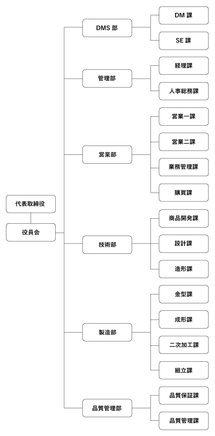 | SE課 | 新規製造案件の営業業務を行います。 |